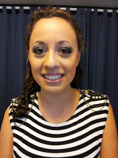 Natasha wanted a very glam set of false lashes. Her eyes were lined with MUFE black aqua eyes liner. Shades of grays, blacks and silvers were used on Natasha's eyes along with whites to create a sultry, dramatic style.